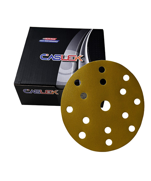 El Disco de Lija de Papel Dorado Caslek es un disco abrasivo de alto rendimiento, diseñado para la rápida eliminación de material y la preparación superficial uniforme. Cuenta con grano de óxido de aluminio resistente sobre un soporte de papel resistente, que proporciona una acción de corte constante y una vida útil prolongada. Adecuado para el lijado de madera, metal, plástico y superficies pintadas en aplicaciones profesionales e industriales.